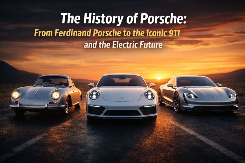 Discover the fascinating history of Porsche, from the first Porsche 356 to the iconic 911 and the electric Taycan revolution.